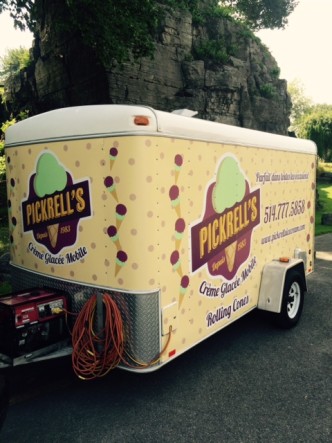 Notre entreprise La crème glacée mobile Pickrells est une société enregistrée au Québec. Nous possédons une assurance complète nous permettant d’offrir notre service sur une propriété privée ou, sous réserve de l’obtention d’un permis par l’organisateur de l’événement, dans un lieu public. Contrairement à un service offert dans un camion de cuisine de rue, nous ne demandons pas aux consommateurs de payer quoi que ce soit. Le coût de notre service est négocié dans le cadre d’une entente de service en fonction du nombre estimé de portions à servir; il est établi à la fin de l’événement selon le nombre de portions servies, comme le fait tout traiteur.